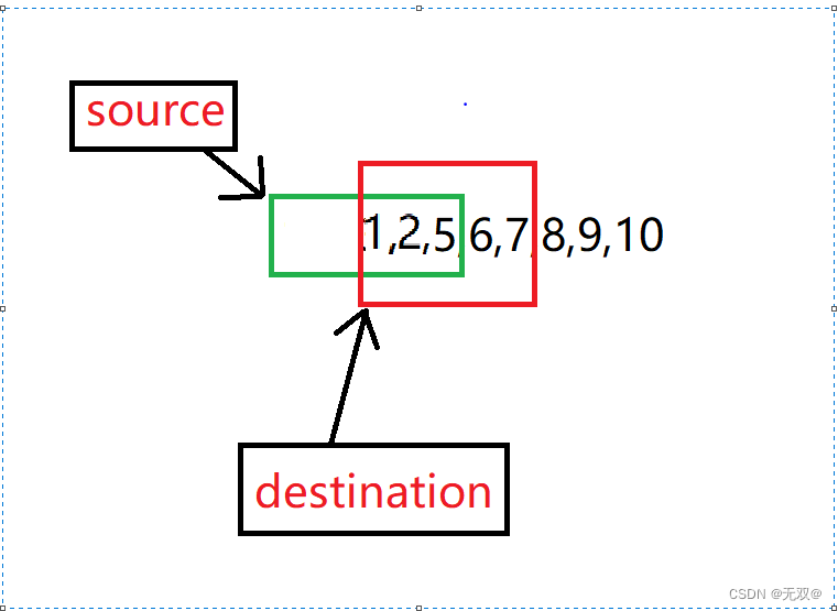 如果我们需要将destination中的1,2,3,4,5拷贝覆盖到3,4,5,6,7