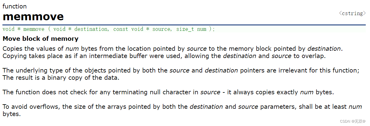 我们会发现,该函数的各个参数返回类型与memcpy大为相似,其实是的,我们可以将memmove理解为更为完善的memcpy,我们现阶段不需要对他们进行更深的理解。