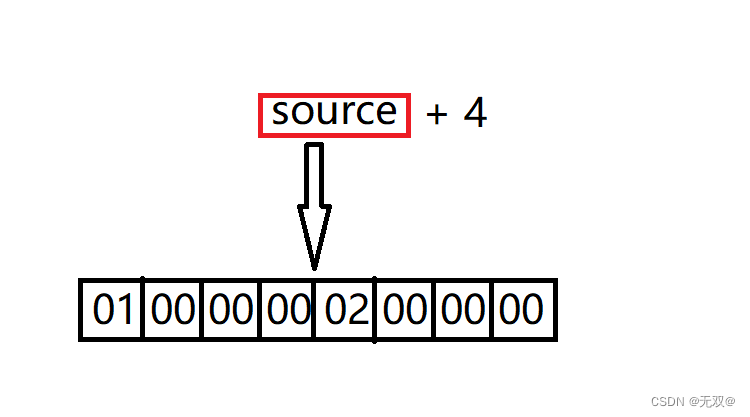 source = (char*)source + 1;