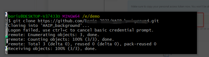 fatal: Authentication failed for 'https://***/'