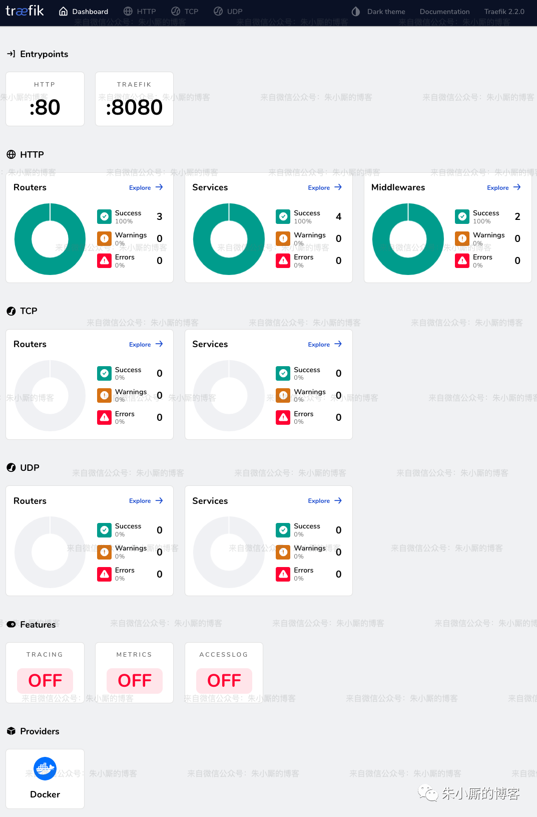 我们可以使用 http://localhost:8080/ 来访问 Traefik 官方Dashboard,效果图如下: