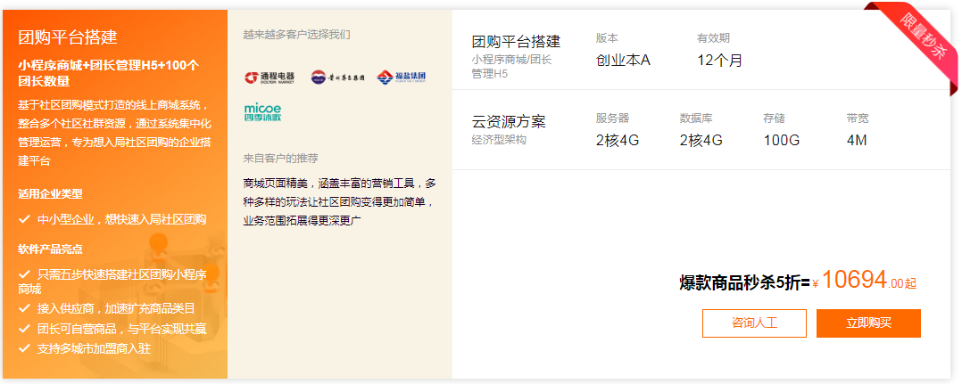 而阿里、华为这样的厂商,支持项目线上部署的价格,即便大促打折后,依、然、不、菲——