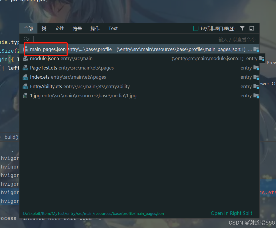 我们直接快速按两下shift 打开搜索框 搜索main_ pages.json