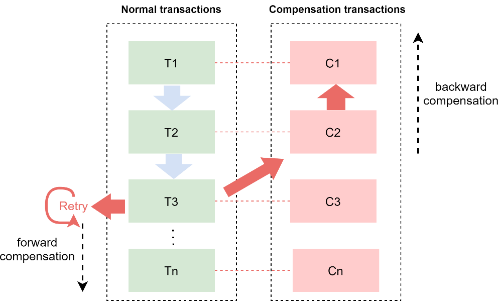 基于 saga 的分布式事务的思想设计实现,需要考虑事务补偿、重试,同时下游系统要保证幂等,以及事务补偿的成功性,不需人工介入。