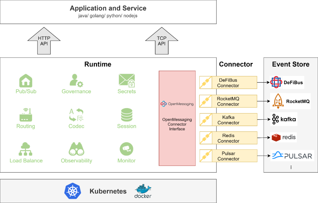 一种基于 OpenMessagingConnector 接口的实现,支持将 DeFiBus 作为事件存储,运行于 eventmesh-runtime 之上,实现事件的发布与订阅