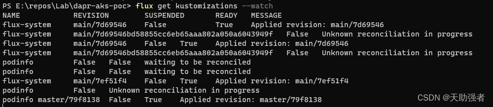 flux get kustomizations --watch