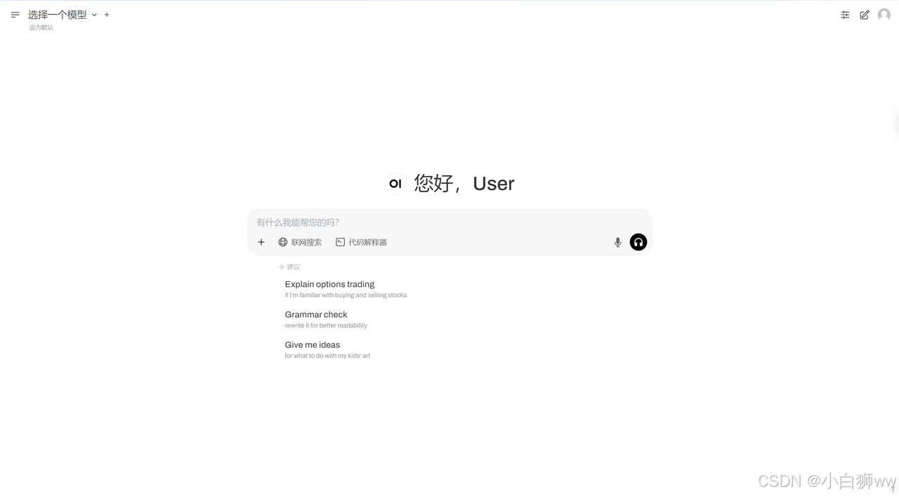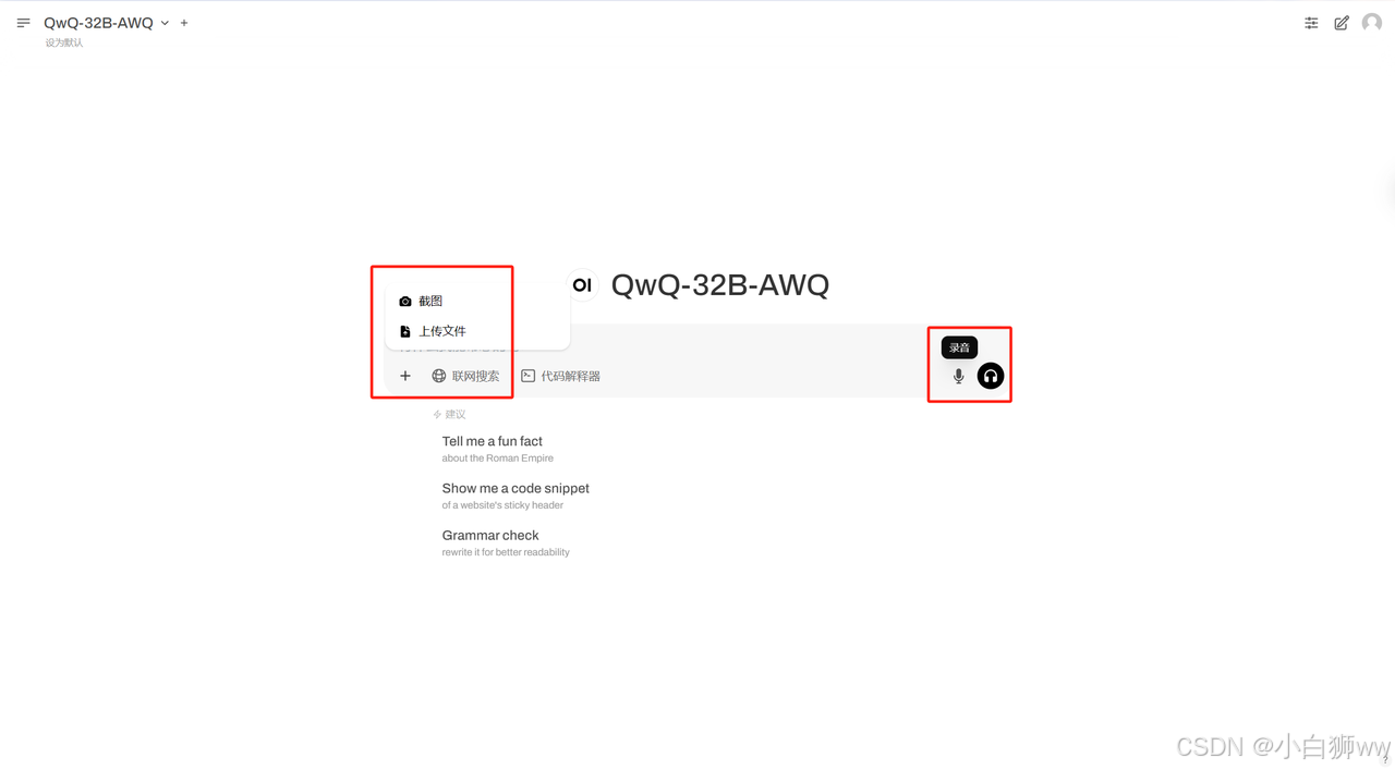 进入网页后,即可与模型展开对话。在中间的输入框输入对话内容,模型支持文本输入、图片上传、文件上传和语音输入。