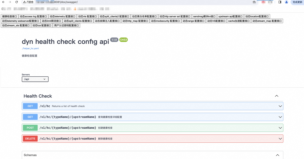 OpenNJet 支持通过 swagger 页面实现对各功能opentapi的访问,比如健康检查、动态黑名单配置、动态access log 配置、动态 location 配置、动态 upstream api 配置等一切可以配置的操作。