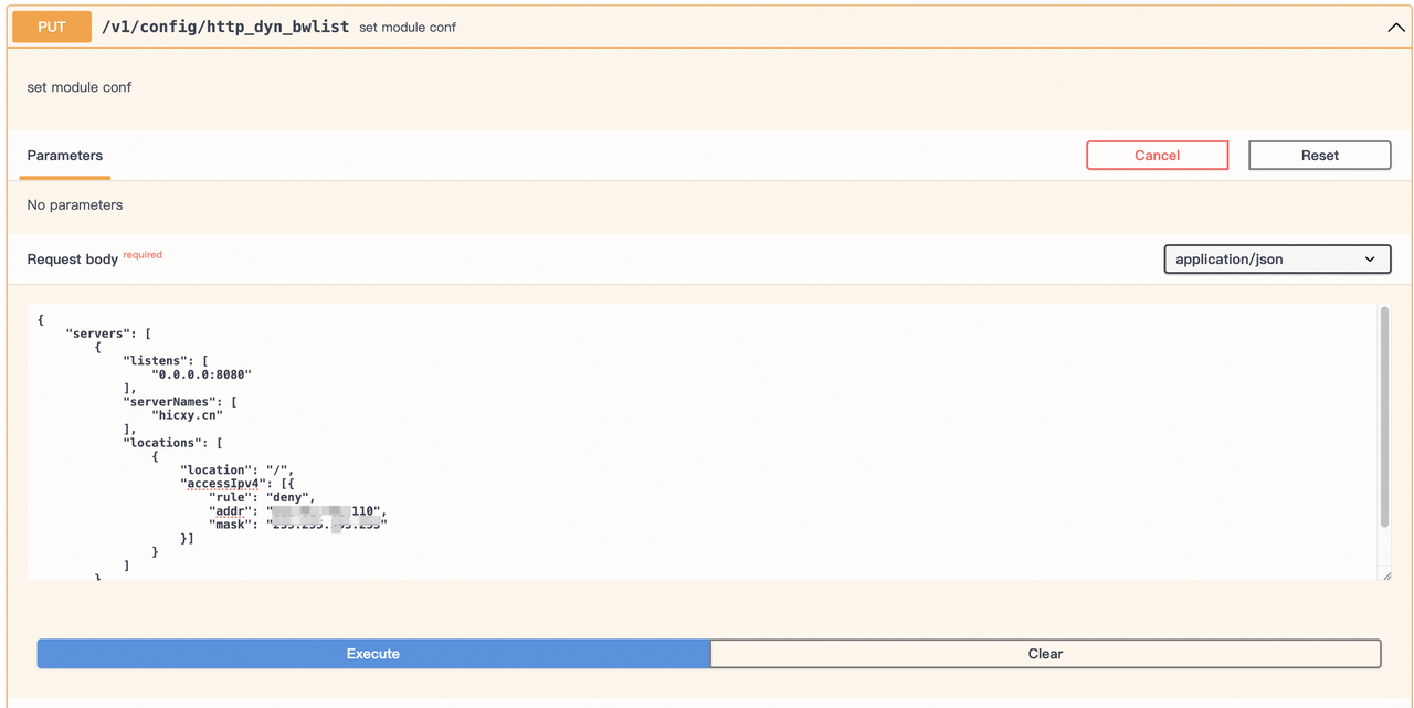 通过 swagger 可以看到,此时 OpenNJet 中没有添加任何的黑白名单。