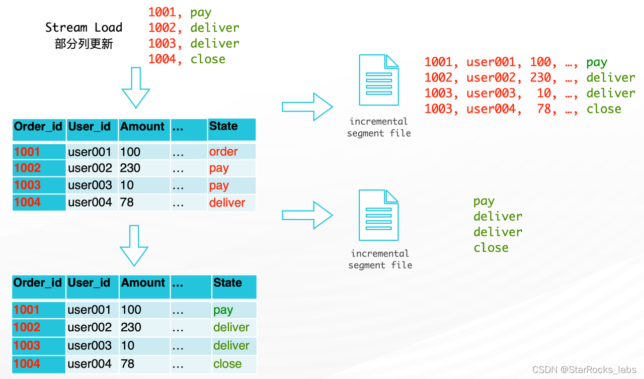 - 在原来的「行模式」下,部分列更新时,StarRocks 会需要重写整行数据。