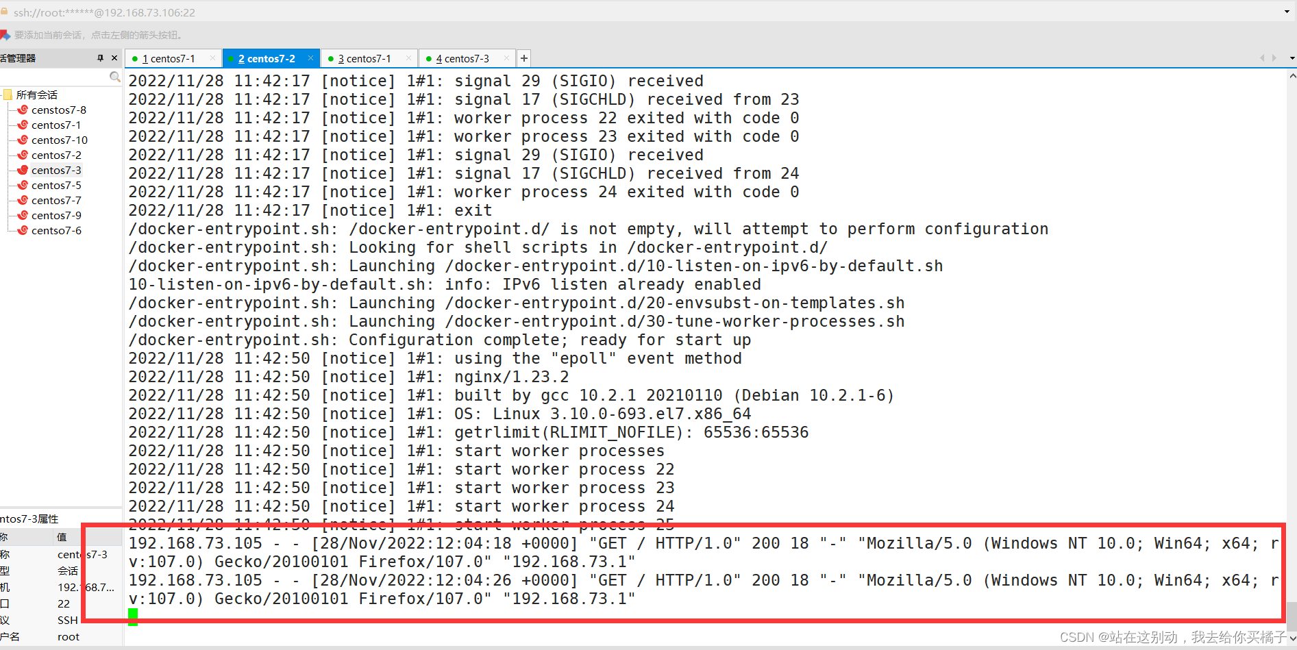 浏览器访问:http://192.168.73.105:8000/ ,并不断刷新。