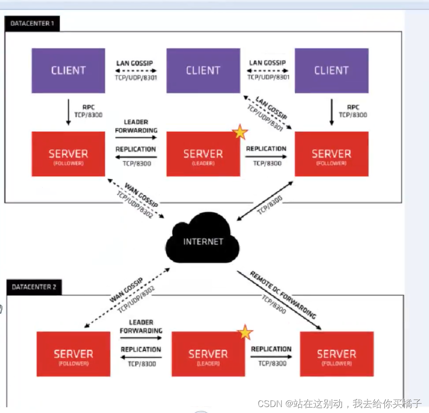 server-leader是所有server节点的老大,它和其它server节点不同的是,它需要负责同步注册的信息给其它的server节点,同时也要负责各个节点的健康监测。
