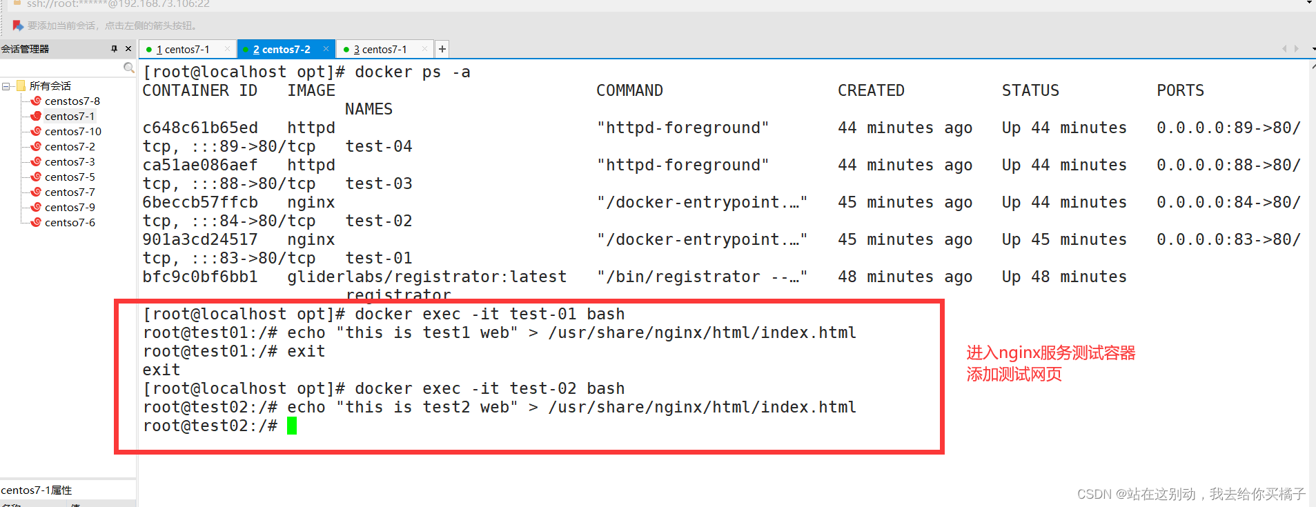| registrator服务器 | 192.168.73.106 | 运行registrator容器、运行nginx容器 |
