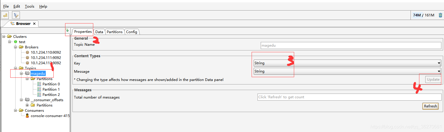 Topic: magedu PartitionCount: 3 ReplicationFactor: 3 Configs: