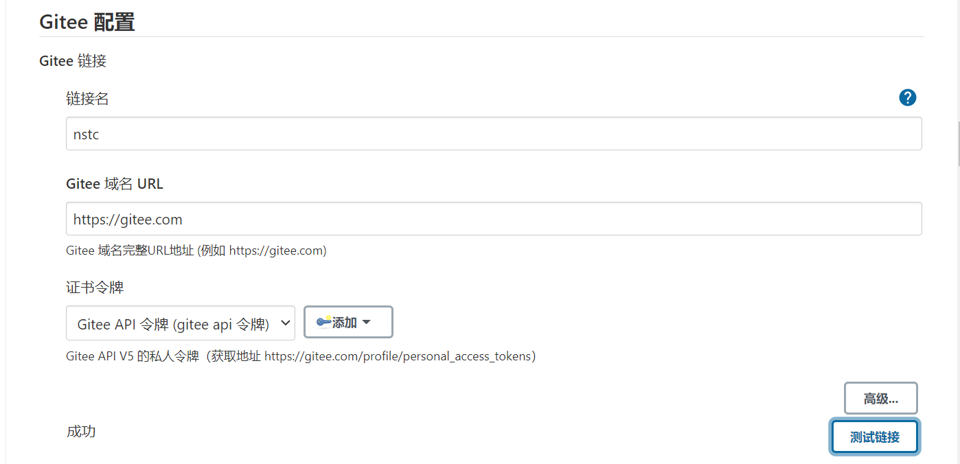 点击 添加-Jenkins;可选择用户名密码 或者 私人令牌,根据操作提示一步一步配置即可