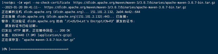wget --no-check-certificate https://dlcdn.apache.org/maven/maven-3/3.8.7/binaries/apache-maven-3.8.7-bin.tar.gz