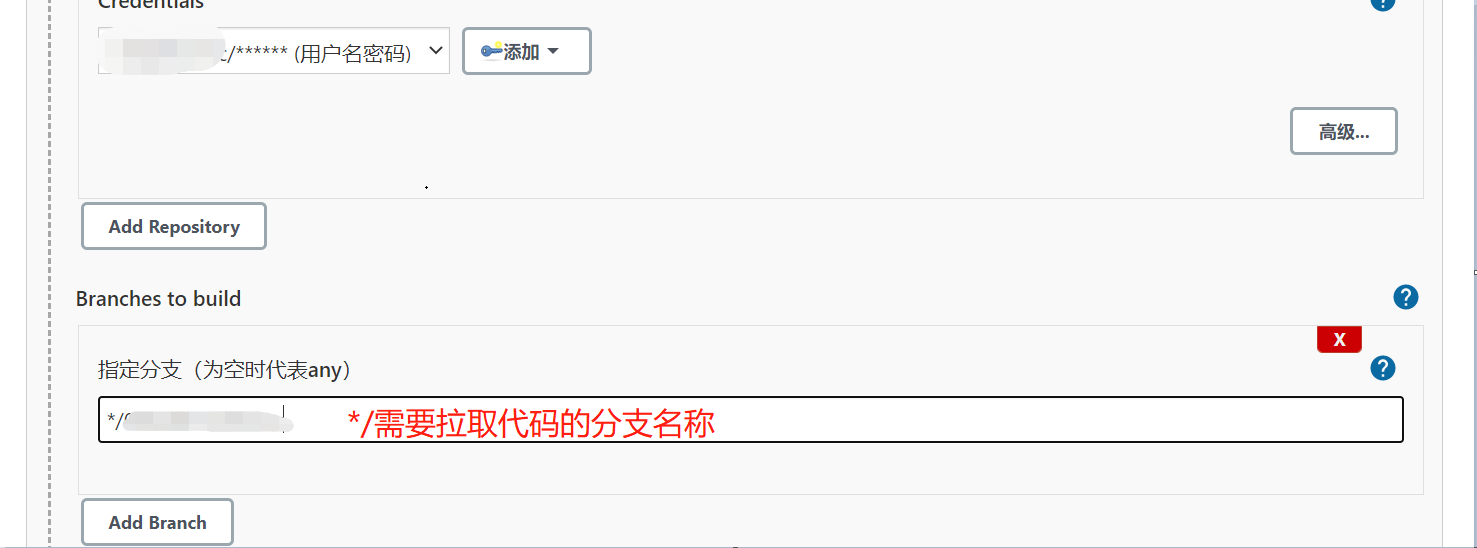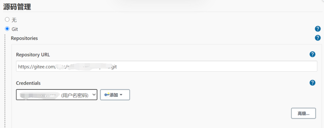 这个地方需要注意的是,还得新建一个用户名密码的凭据源码才能配置成功