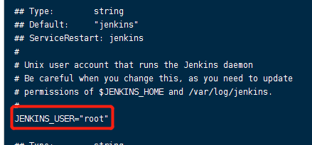 由于jenkins安装好,默认JENKINS_USER="jenkins",有可能会遇到jenkins操作服务器文件权限问题,例如一些日志写入文件啊什么的