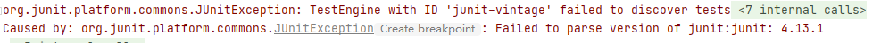 org.junit.platform.commons.JUnitException: Failed to parse version of junit:junit: 4.13.1