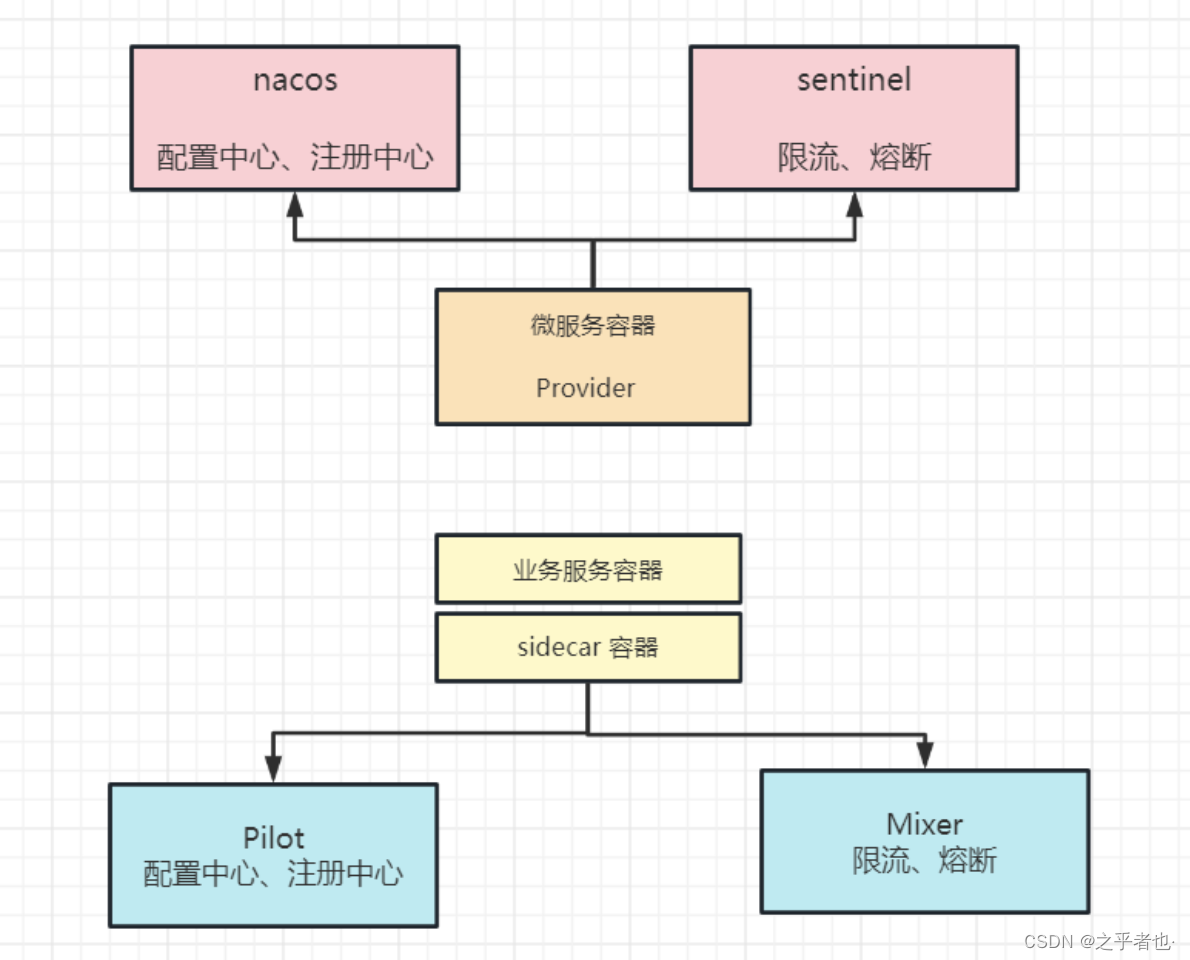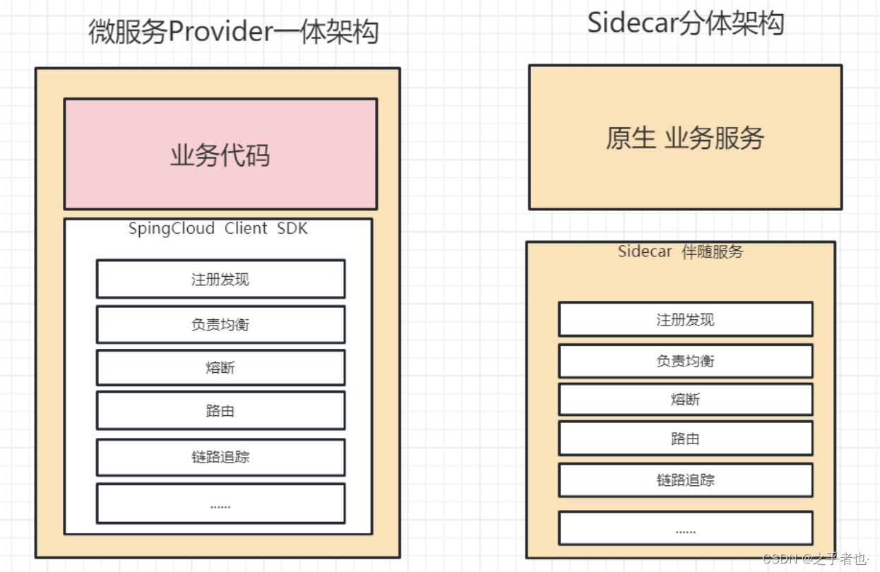 Mesh中Sidecar分体架构与微服务Provider一体架构对比