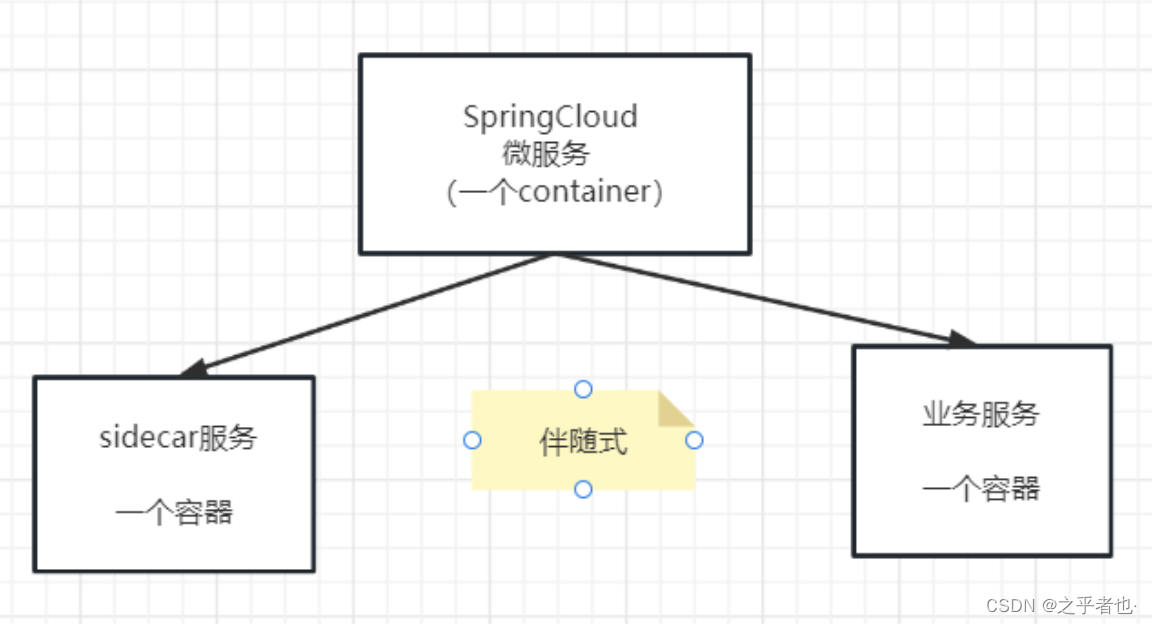 Sidecar模式 把整个微服务(如SpringCloud微服务) 进行服务实例的架构解耦,一分为二,分为两个服务