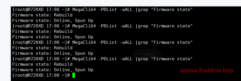 Dell R720XD 更换raid1(两块硬盘)故障硬盘