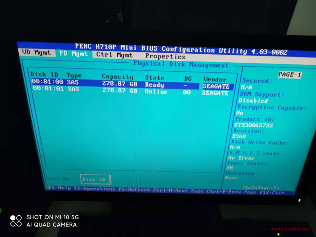 可以看到,新硬盘已经是ready状态了,然后选中该硬盘,按F2(operation操作),进行操作