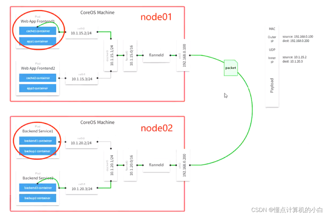 1.2这里会发现在协议这边又做了一次封装头部原因和再flannel模式中封装解封装有一个密切的关系,原因如下: