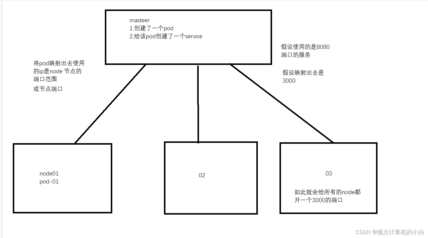 如上图他会给每一个node都映射上一个3000端口,为的是让所有端口都占用此端口。
