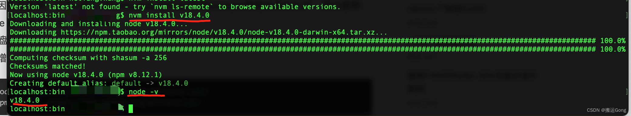 选择一个需要的版本,使用命令: nvm isntall 【版本号】 进行安装: