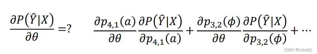 好的,经过上面的变形,现在压力给到了如何计算小概率,即每个箭头代表的概率,对参数 θ 的偏微分。