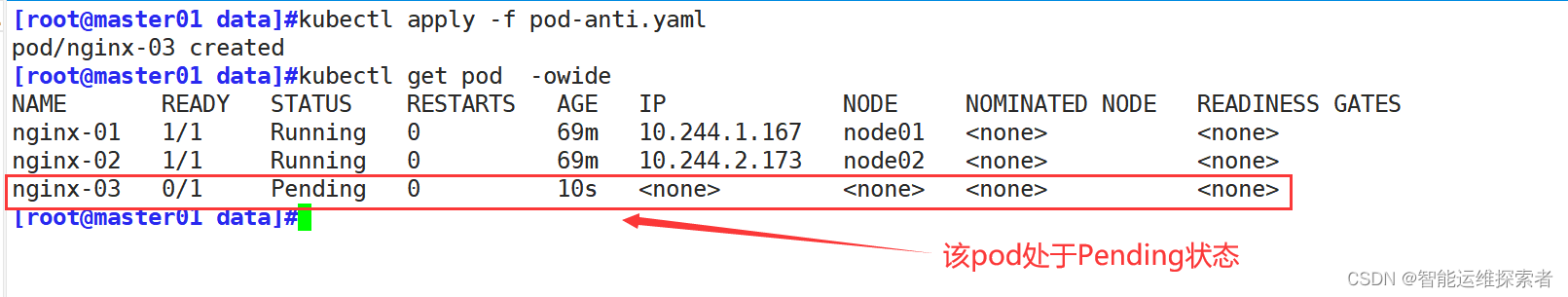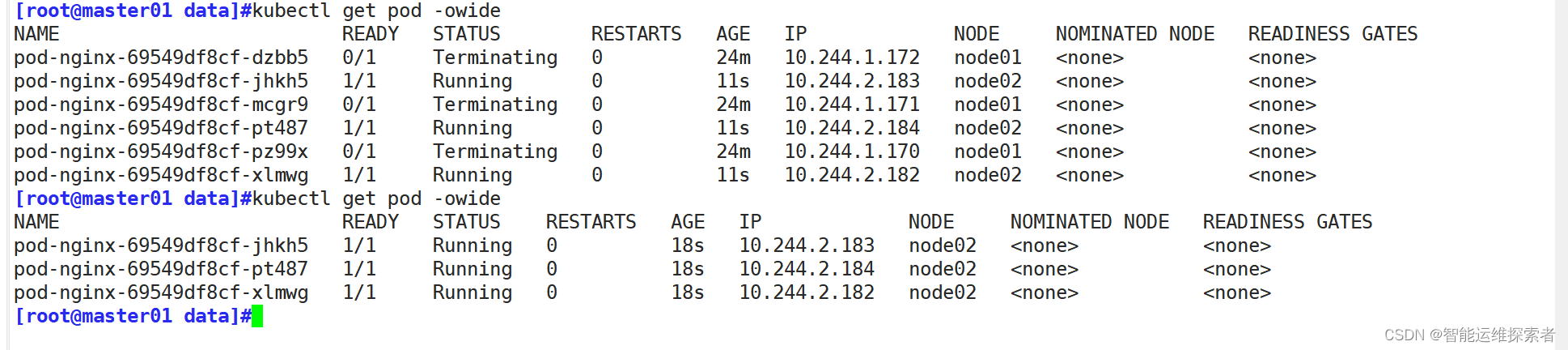 kubectl drain node01 --force --ignore-daemonsets --delete-local-data:强制驱逐所有 Pods(包括 DaemonSets),并删除 Pods 的本地数据。注意,使用 --force 选项可能会导致数据丢失,请确保在使用前备份重要数据。