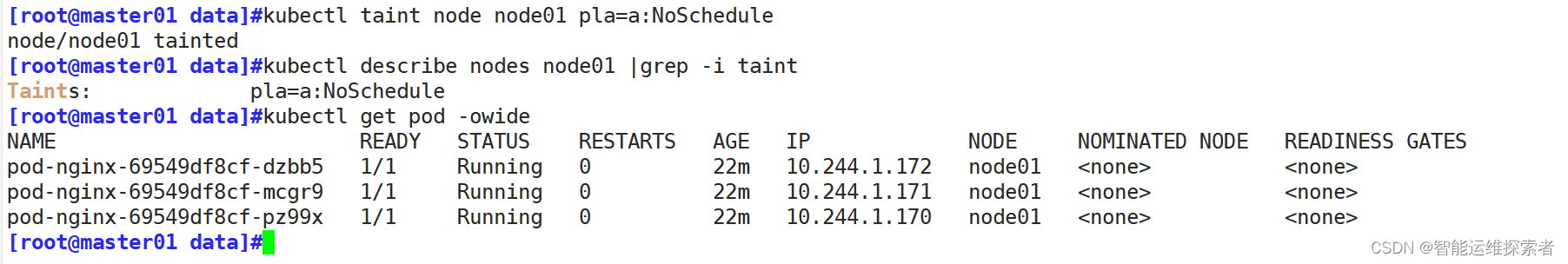 [root@master01 data]#kubectl describe nodes node01|grep -i taint