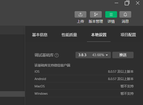 解决办法很简单,将调试基础库,变低一点,就好了