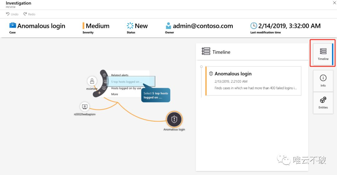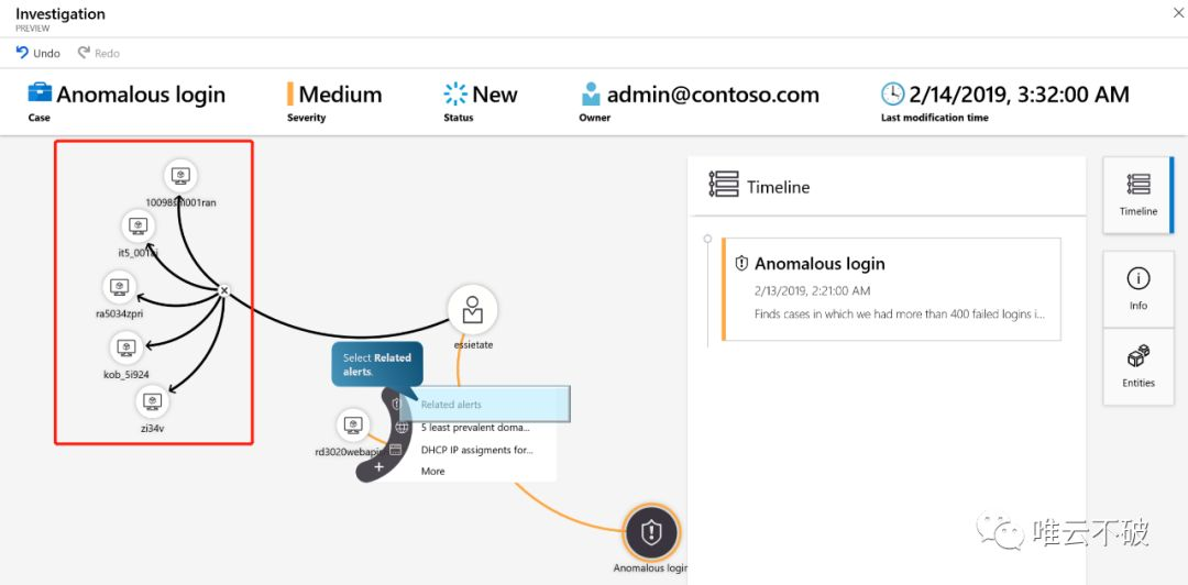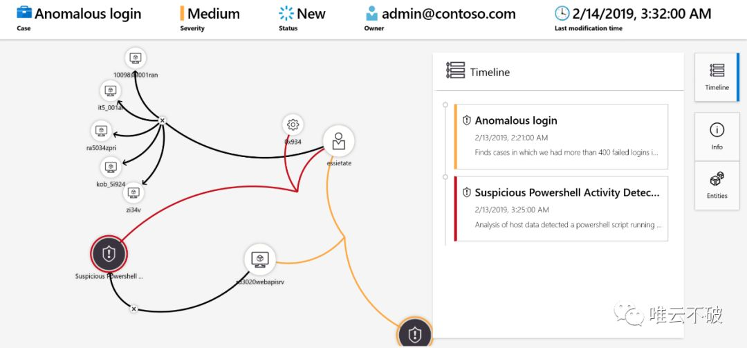 微软也将这个能力,将专家对于各类事件ID中的洞察力,内置到Azure Sentinel,从而让客户所需要直接面对的,变成呈几何数缩减的警报及案件,能够基于这个点,从点到面的对案件进行调查,找到真正的漏洞所在。