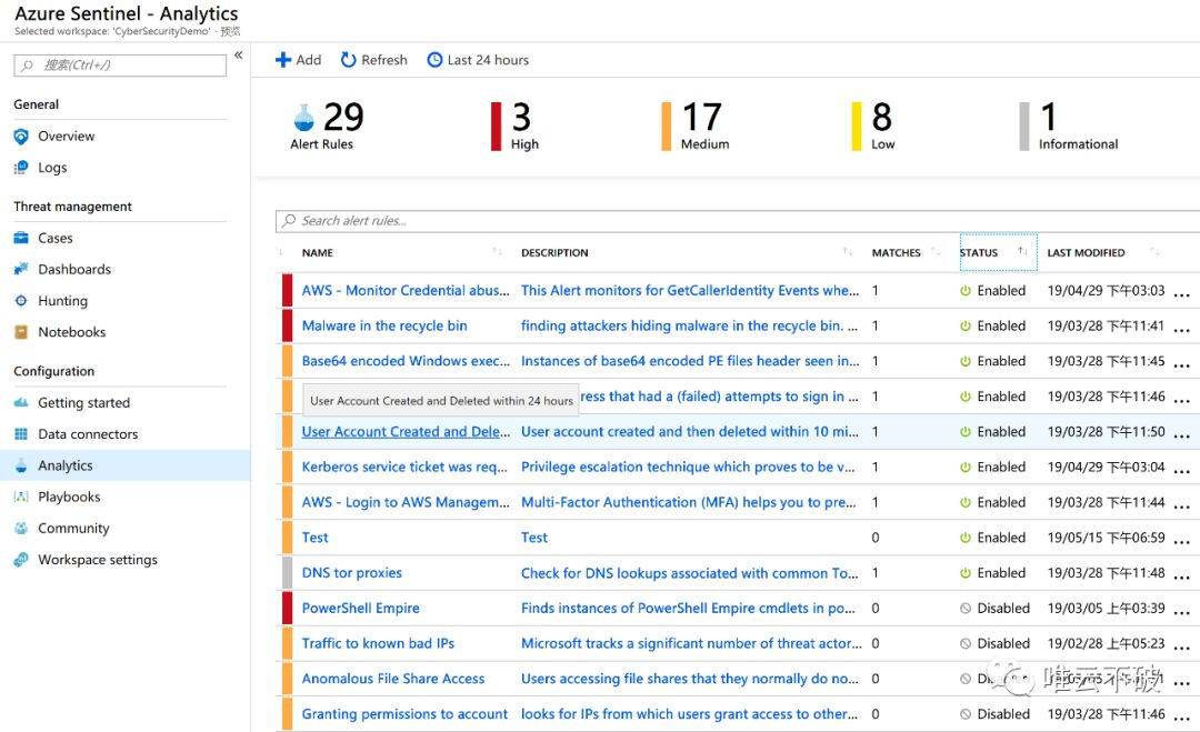 以上就是Azure Sentinel 介绍的第一部分,后续我们会来看下Azure Sentinel如何能够主动进行威胁的探查,根据企业自身的员工行为,企业特点来自定义进行安全的主动防御。