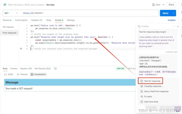 当然除了这些独立的编码功能外,像接口方面我们使用的postman要已经增加了AI协助测试的功能