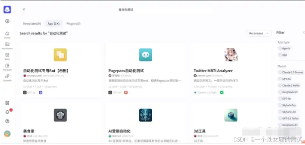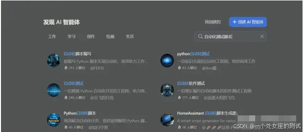 我们先来看看,coze上的一些自动化测试智能体