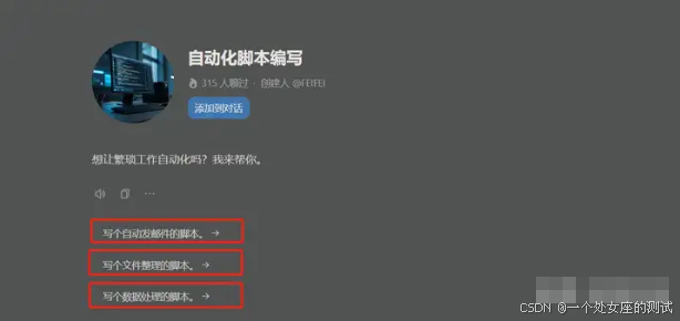 当然之前有不小测试门槛的自动化测试脚本有了AI之后就直接找个AI就可以写了。当然还有大量的智能体就可以协助我们完成自动化测试脚本。