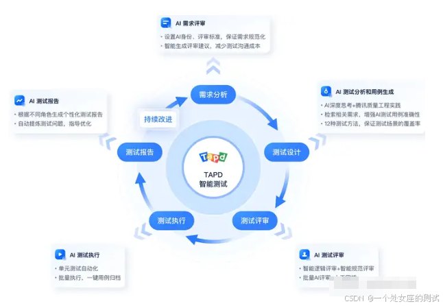 tapd基于需求分析的用户故事,通过AI测试分析和用例生成,再到AI测试评审、测试执行、测试报告形成一个闭环。AI模型方面,接入了deepseek+混元大模型。