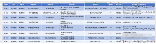 先按自动化测试规定好的Excel格式里填写测试用例也就是测试用例模板,这里的格式主要是和自动化测试的脚本对应。