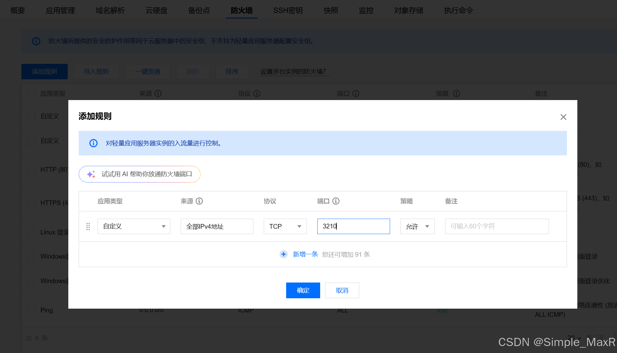 我们进入控制台的防火墙设置,添加允许 3210 端口。再访问就能看到 LobeChat 页面了