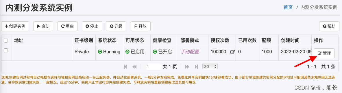 1. 点击“管理”,进入你手动配置模式创建的内测系统。