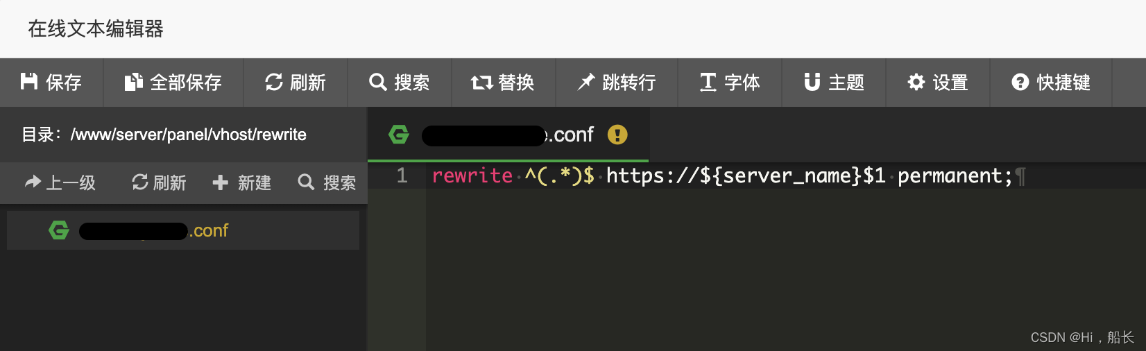 方法3. 在文件/www/server/panel/vhost/rewrite/XXXX.conf中添加rewrite代码(XXXX指站点域名)