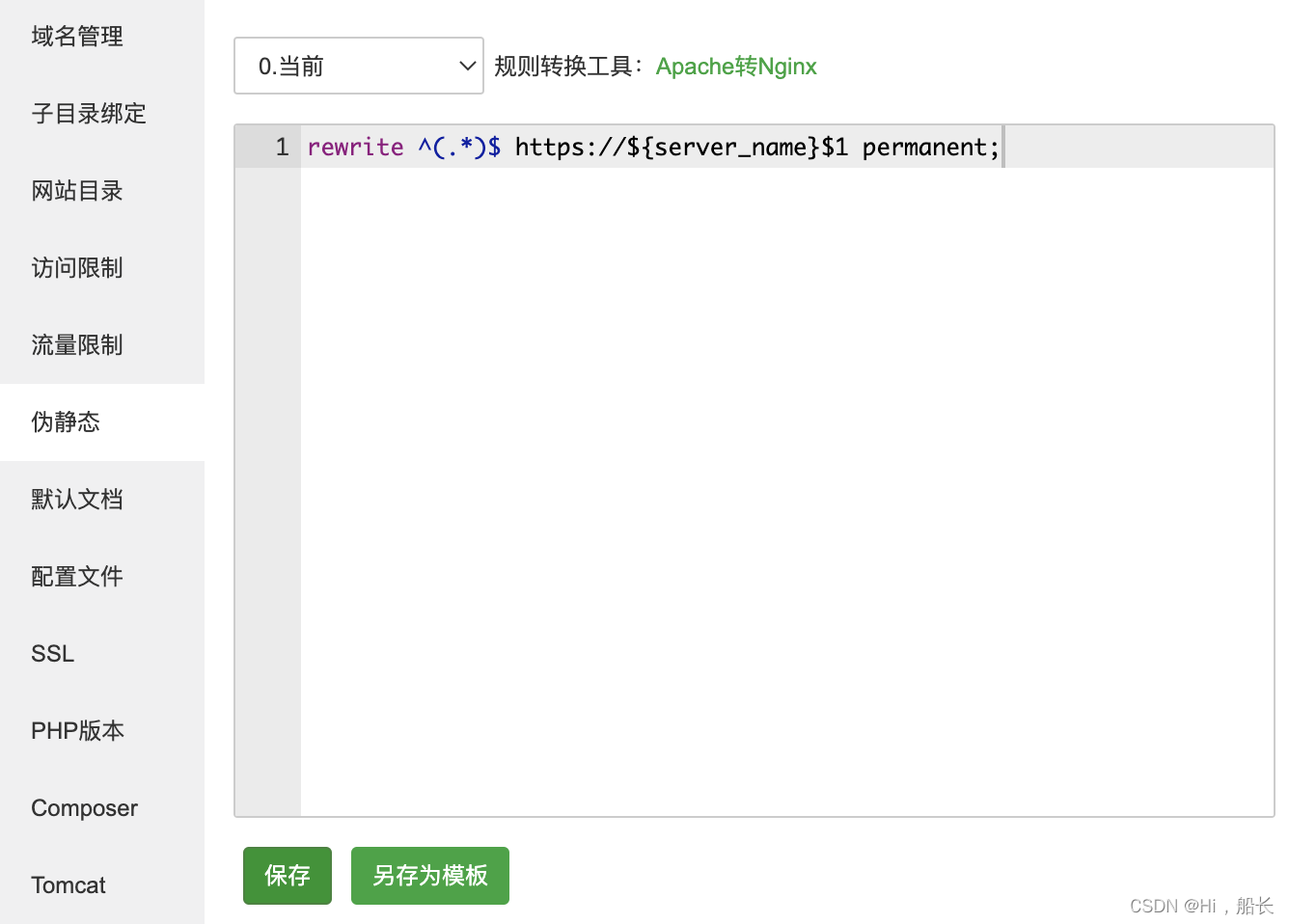 rewrite代码:rewrite ^(.*)$ https://${server_name}$1 permanent;