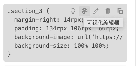 默认情况下复杂的配置面板也是收起的,需要点击可视化编辑器后才 会出现