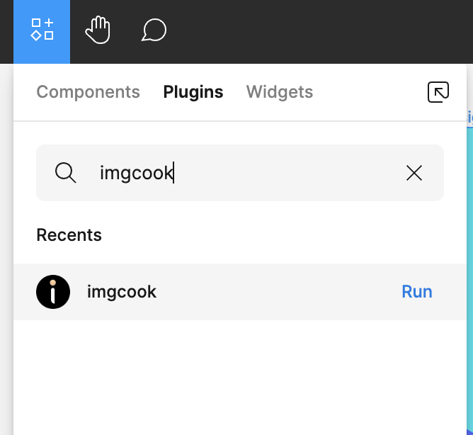 首先我们来看看大名鼎鼎阿里出品的 imgcook,首先在 figma 插件中 找到 imgcook 插件,点击 run