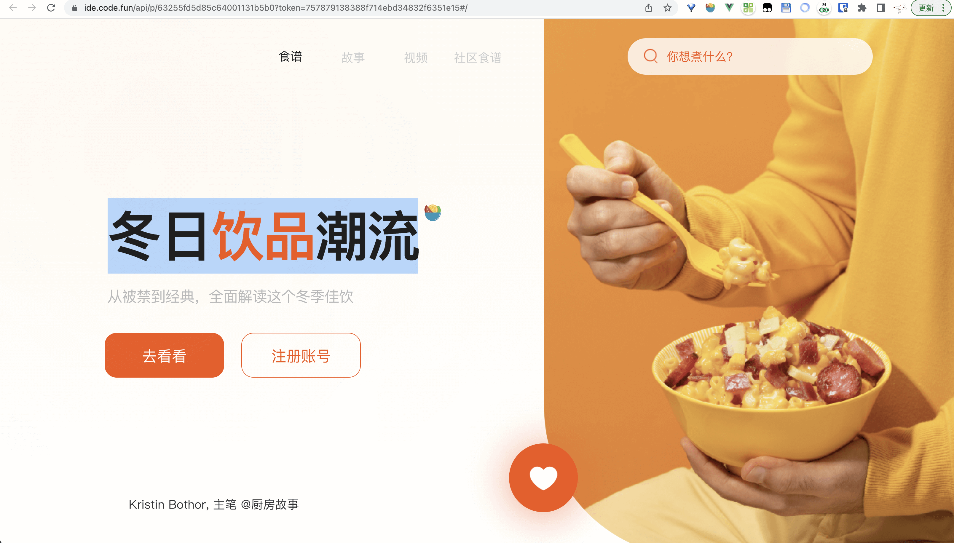 接着我也从 figma、即时设计上找了几个设计稿在 codefun 上生成效果,感觉都非常的不错,如果你想生成一个静态的落地页,真的强烈推荐,秒级部署。
