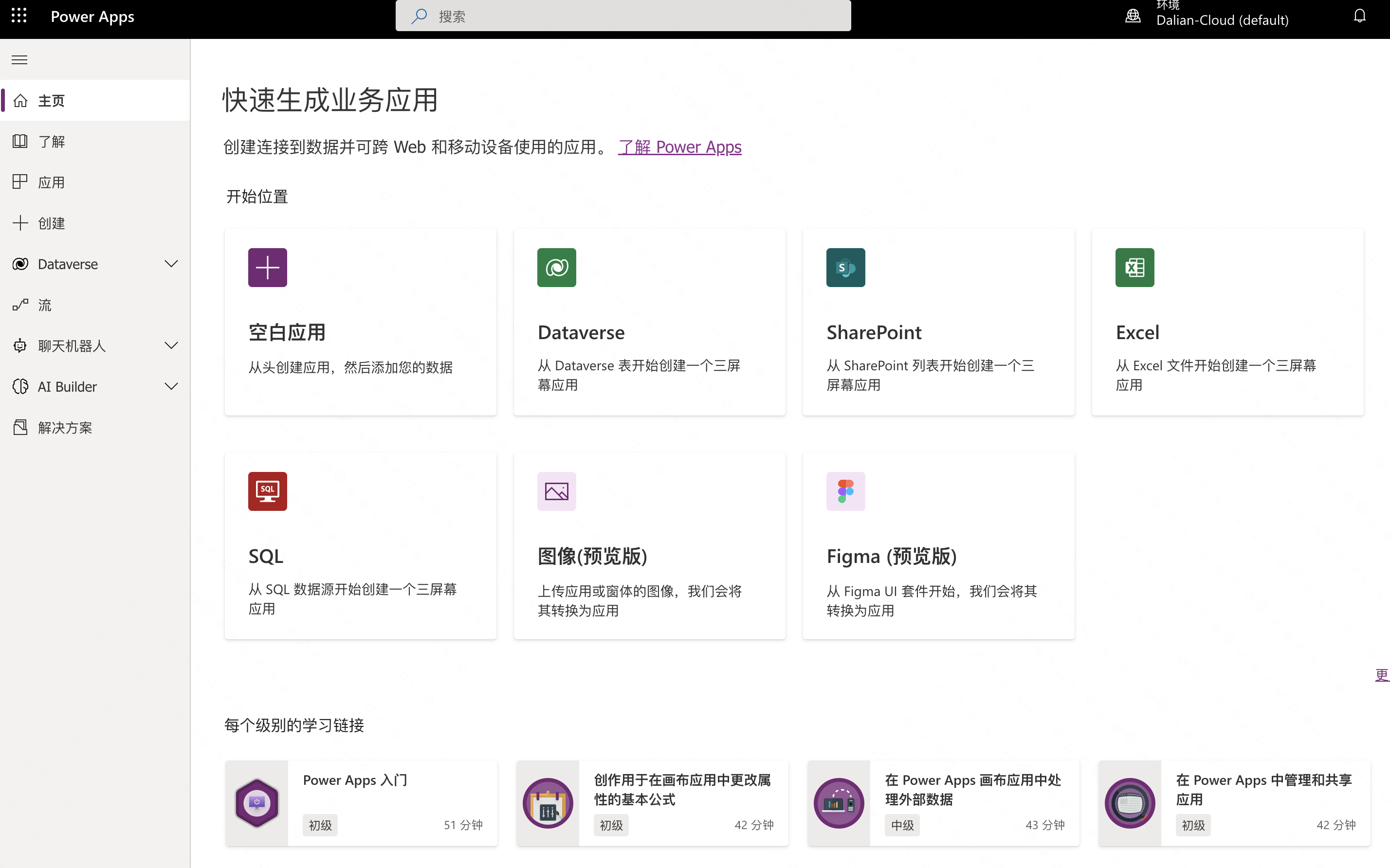 首先登录 https://make.powerapps.com/ 首页,登录必须是教育账号,或者是公司账号。我这里申请了个 a1 的教育账号来体验。