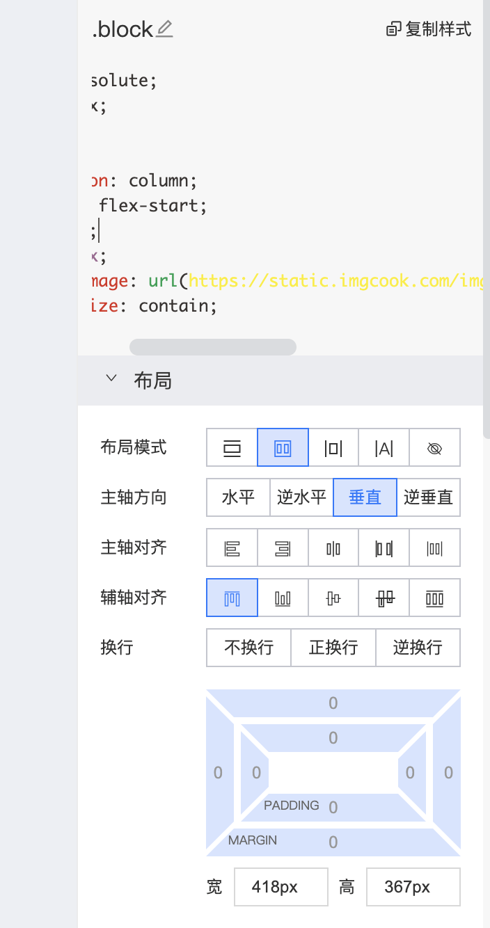 国内业界目前也有很多这种方向的优秀低代码平台/方案,像 code.fun ,imgcook,58 的 毕加索等等首先我们来看看大名鼎鼎阿里出品的 imgcook,首先在 figma 插件中 找到 imgcook 插件,点击 run然后出来一个弹窗,点击导出成功后前往粘贴数据然后就生成了我们的项目我们可以可以到,大概的布局都还原了,但是一看细节,却不太尽人意。当然我们可以使用右侧的面板来自己进行后期